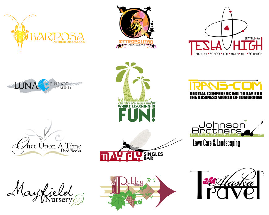 Faux logos created as graphic examples of printing and display capabilities for catalogs and marketing purposes.